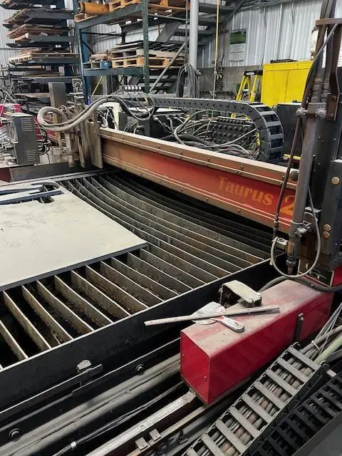 Used 1997 C & G TAURUS Plasma Cutter with 130 Amp Hi Def power, Hypertherm CNC controls, and a 7' x 21' table. Features a single torch and rapid traverse speed of 900 ipm for efficient cutting.
