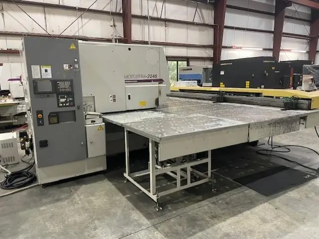 MURATA MOTORUM 2048, 1999 model, used turret punch. Features 22-ton punch capacity, 49x98 sheet capacity, and servo electric punching force. Equipped with Fanuc 18i-P Control, 30-station turret, 2 auto-index stations.
