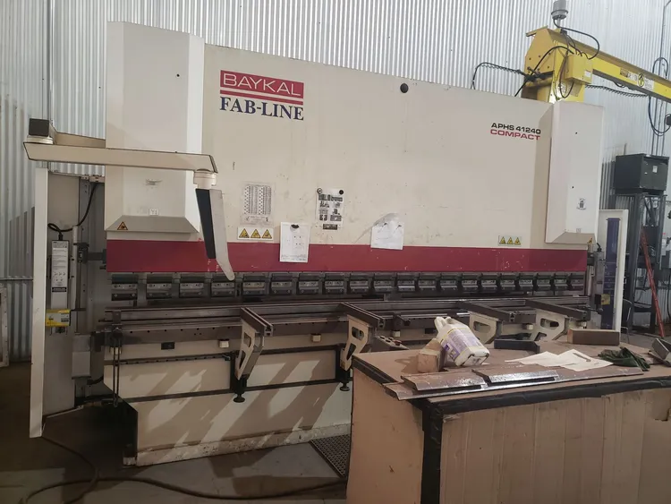 BAYKAL APHS 41240, 2019, used press brake with 240T tonnage, 13.45' length, and 9.84" stroke. Includes ESA 640 touch screen, CNC crowning, AKAS safety, and tooling. Ideal for precision bending and forming tasks.