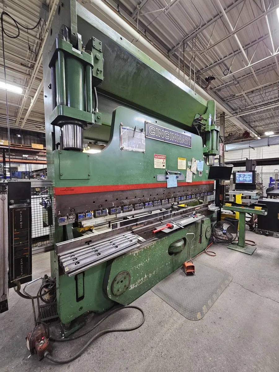 Cincinnati Touch Screen CNC Controls, X & R Axis Back Gauge, Safety Light Guarding, Increased Stroke & Open Height, Foot Switch. Some assortment of tooling will be provided.